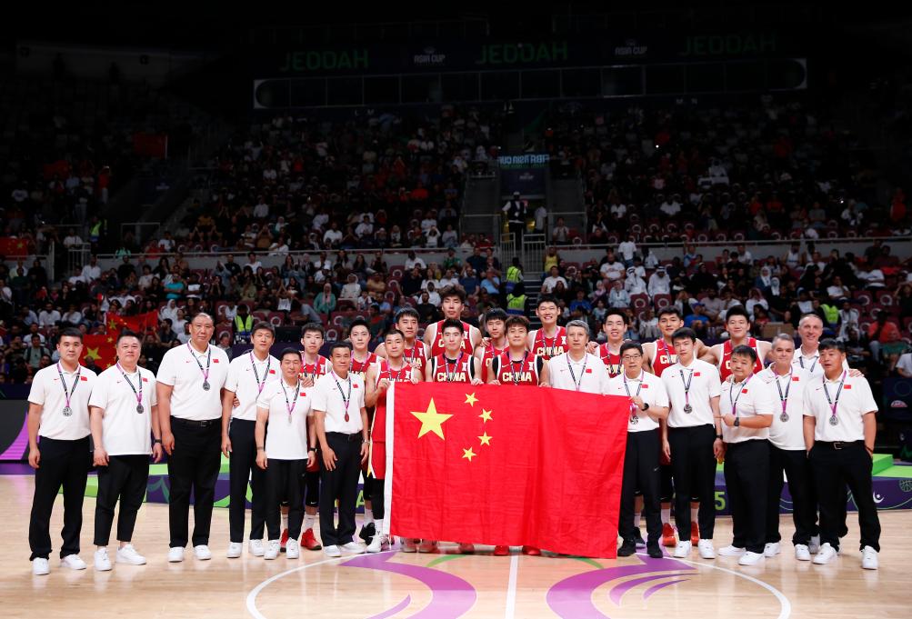 8月17日,在2025國際籃聯(lián)亞洲杯決賽中,中國隊(duì)獲得亞軍。圖為中國隊(duì)在頒獎(jiǎng)儀式后合影。新華社記者 王東震 攝