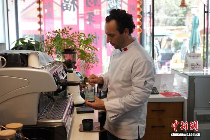 2025年1月13日,李逍遙在烘焙店中制作咖啡。 羅婕 攝