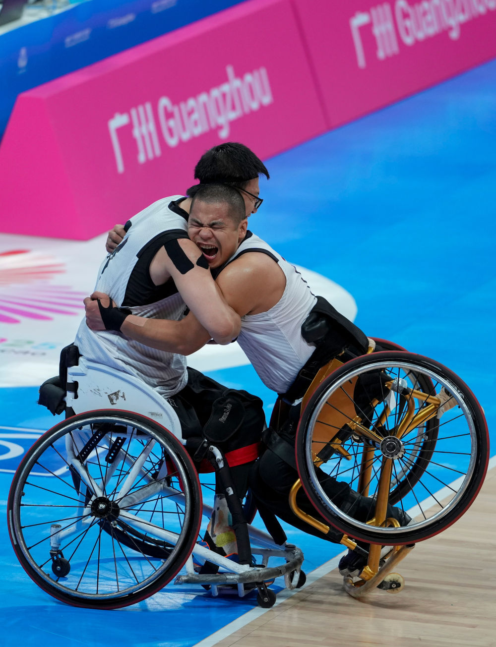 12月8日,在廣州舉行的全國(guó)第十二屆殘疾人運(yùn)動(dòng)會(huì)暨第九屆特殊奧林匹克運(yùn)動(dòng)會(huì)輪椅籃球項(xiàng)目男子三人籃球決賽中,遼寧隊(duì)13:9戰(zhàn)勝北京隊(duì)。新華社記者 吳魯 攝