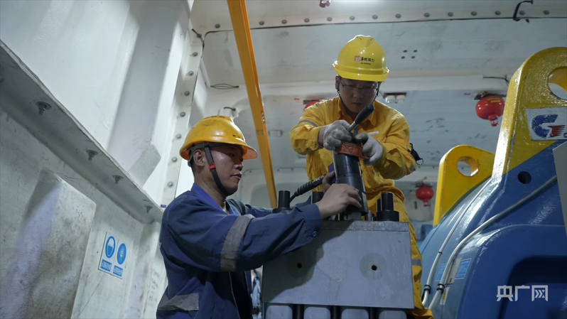 李亞雄與同伴對風機內(nèi)部部件進行巡檢維護(央廣網(wǎng)發(fā) 受訪者供圖)