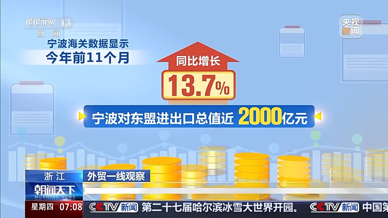 寧波某外貿企業(yè)負責人 陳斌:今年我們企業(yè)1到10月份,出口東盟相比去年有了50%到60%的增長。