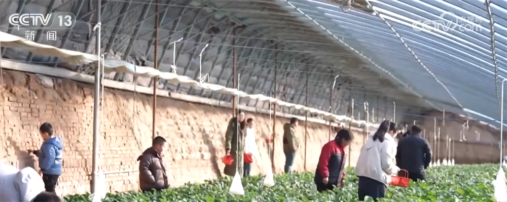 高標(biāo)準(zhǔn)日光溫室大棚整齊排列,通過現(xiàn)代農(nóng)業(yè)技術(shù)的賦能,這里的草莓實(shí)現(xiàn)冬季掛果、蔬菜四季常青,引得周邊市民游客紛至沓來。游客們提著果籃穿梭在翠綠的壟間,歡聲笑語與果蔬清香交織,勾勒出一幅熱鬧的田園圖景。