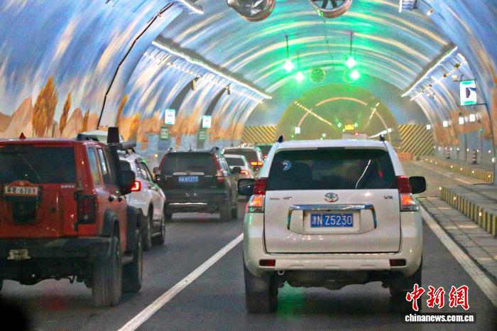 烏尉高速通車首日,車輛在天山勝利隧道穿行。茍繼鵬 攝