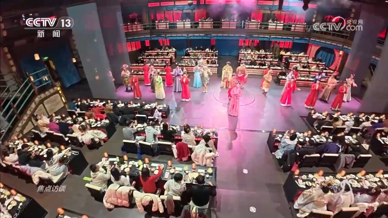 《清明上河·宋宴》是全國(guó)首個(gè)宋文化沉浸式餐秀,通過“宴席+演藝+科技”的創(chuàng)新形式,讓游客化身北宋汴京雅士,跟著宋代名人的腳步風(fēng)雅入宴。