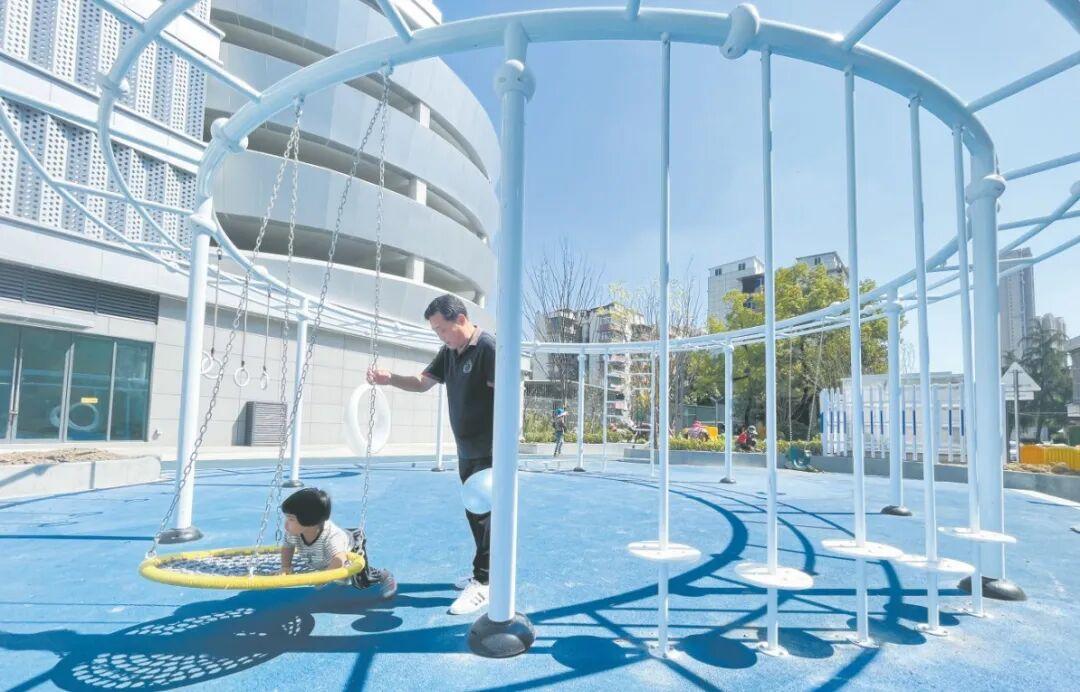 漢陽(yáng)區(qū)知音東苑小區(qū)停車樓一側(cè)建有兒童娛樂(lè)區(qū),成為小朋友的快樂(lè)天地。記者冷靖華 攝