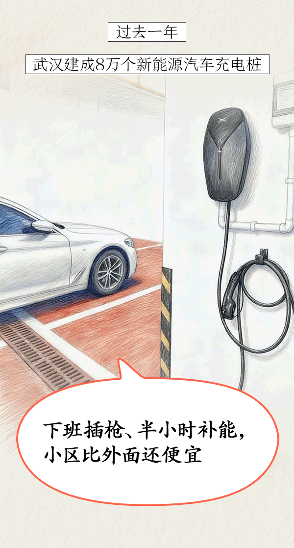 過(guò)去一年,武漢新增20.59萬(wàn)個(gè)停車位,建成8萬(wàn)個(gè)新能源汽車充電樁,將“續(xù)航焦慮”化解于市民家門口。