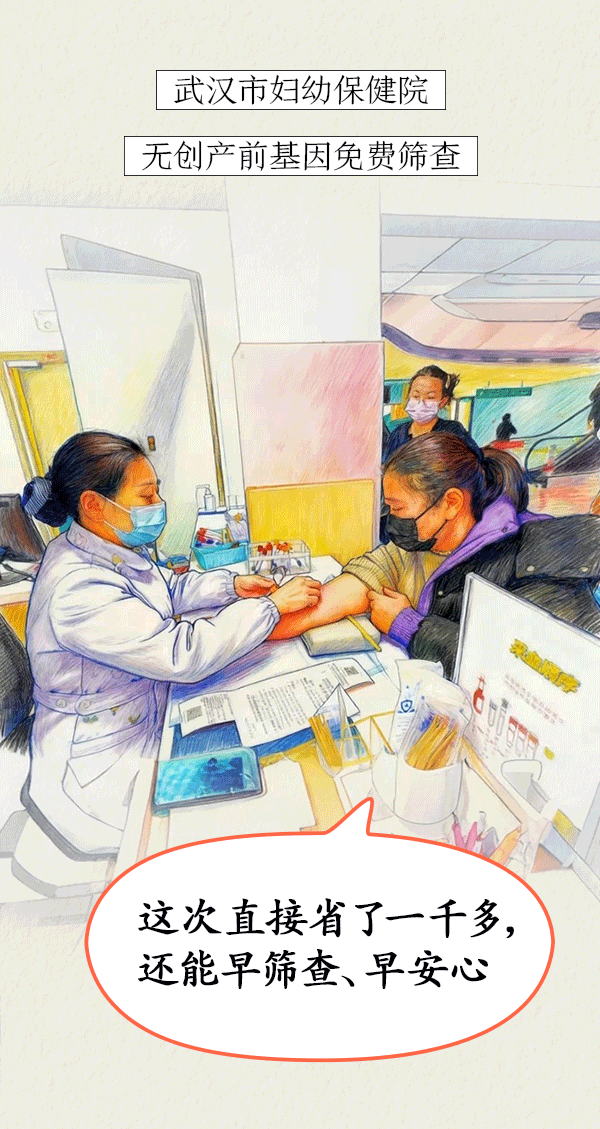 在武漢市婦幼保健院,懷孕3個(gè)月的張女士開心地享受到無(wú)創(chuàng)產(chǎn)前基因免費(fèi)篩查。她說(shuō):“我和丈夫都不是武漢戶籍,生一孩時(shí)沒(méi)享受到免費(fèi)篩查,這次直接節(jié)省了1000多元。”