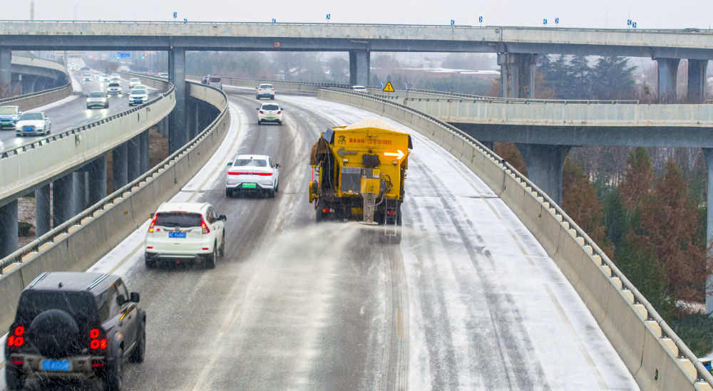自18日起,河南多地迎來大范圍低溫雨雪冰凍天氣。記者從河南省交通運輸廳獲悉,河南交通部門按照不少于應(yīng)對5輪大雪的物資儲備要求,全力開展除雪保通作業(yè)。全省高速公路211個應(yīng)急物資儲備點全面啟用,217支搶險隊伍、6711名養(yǎng)護(hù)人員整裝待命;1040臺多功能除雪車、327臺撒布機(jī)等大型設(shè)備以及7.1萬余噸融雪劑、5000余噸防滑料已配置至關(guān)鍵點位,確?!袄贸?、用得上”。