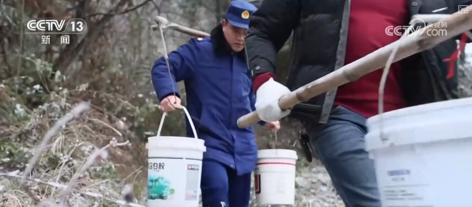自1月19日出現(xiàn)低溫天氣以來,印江縣沙子坡鎮(zhèn)天星村已被冰雪覆蓋兩天,最低氣溫降至-5℃。該村16個村民組均位于海拔900米以上的山區(qū),日常生活用水依靠36口水池集中供應(yīng)。持續(xù)低溫導(dǎo)致通往村民家的供水管道凍結(jié),同時村內(nèi)道路結(jié)冰,村民生活用水受到影響。得知這一情況后,當(dāng)?shù)劓?zhèn)村干部與消防站人員迅速組成抗凝凍應(yīng)急隊(duì),前往水池取水并挑送至村民家中。