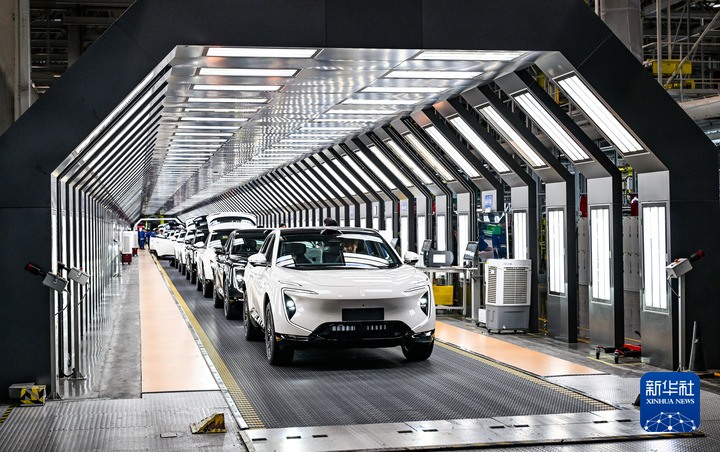2025年9月18日在位于重慶市渝北區(qū)的長安汽車數(shù)智工廠總裝車間拍攝的即將下線的新能源汽車。新華社記者 王全超 攝