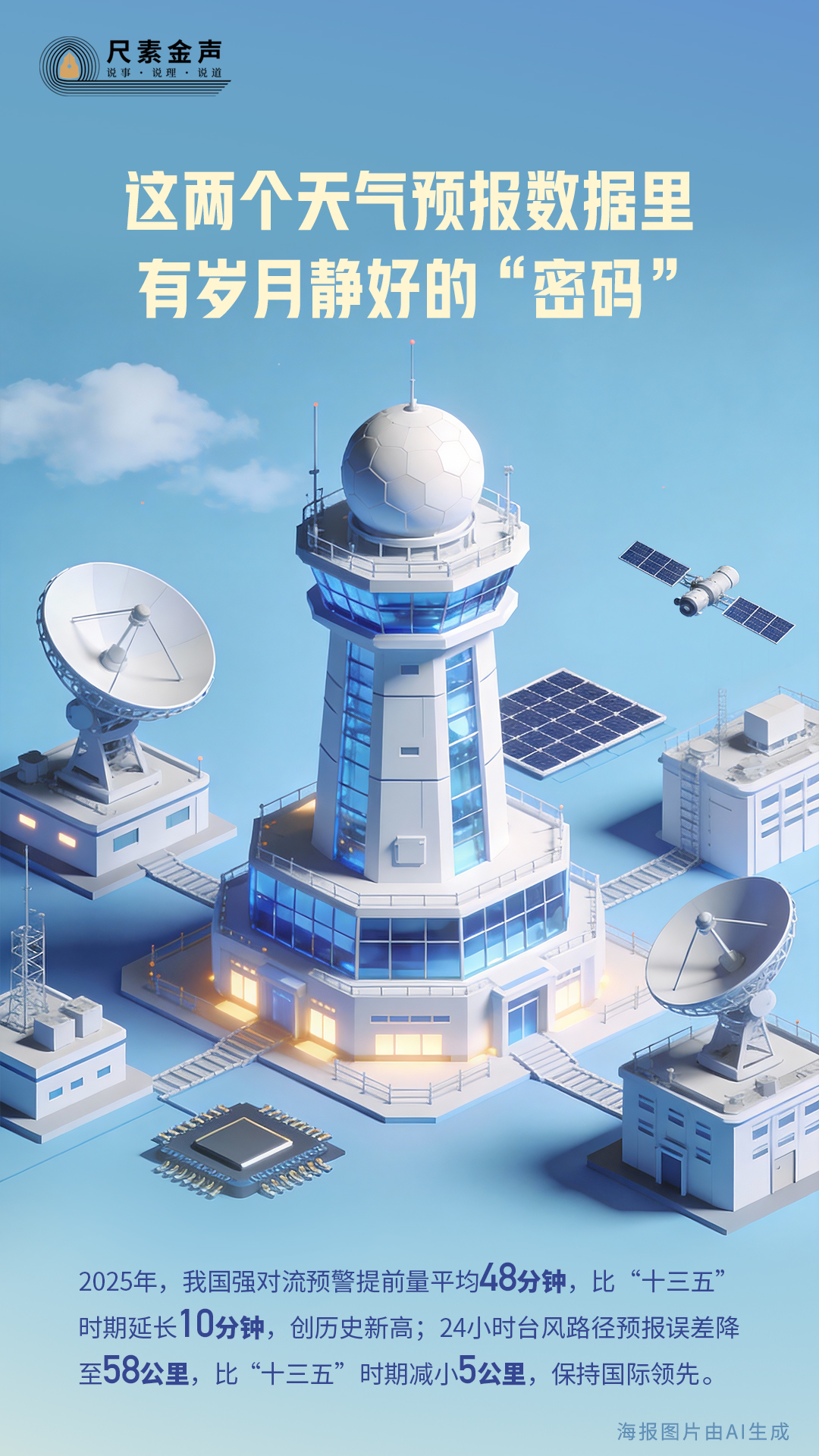 最新的2026年全國氣象工作會(huì)議報(bào)告顯示,2025年,我國強(qiáng)對(duì)流預(yù)警提前量平均48分鐘,比“十三五”時(shí)期延長10分鐘,創(chuàng)歷史新高;24小時(shí)臺(tái)風(fēng)路徑預(yù)報(bào)誤差降至58公里,比“十三五”時(shí)期減小5公里,保持國際領(lǐng)先。