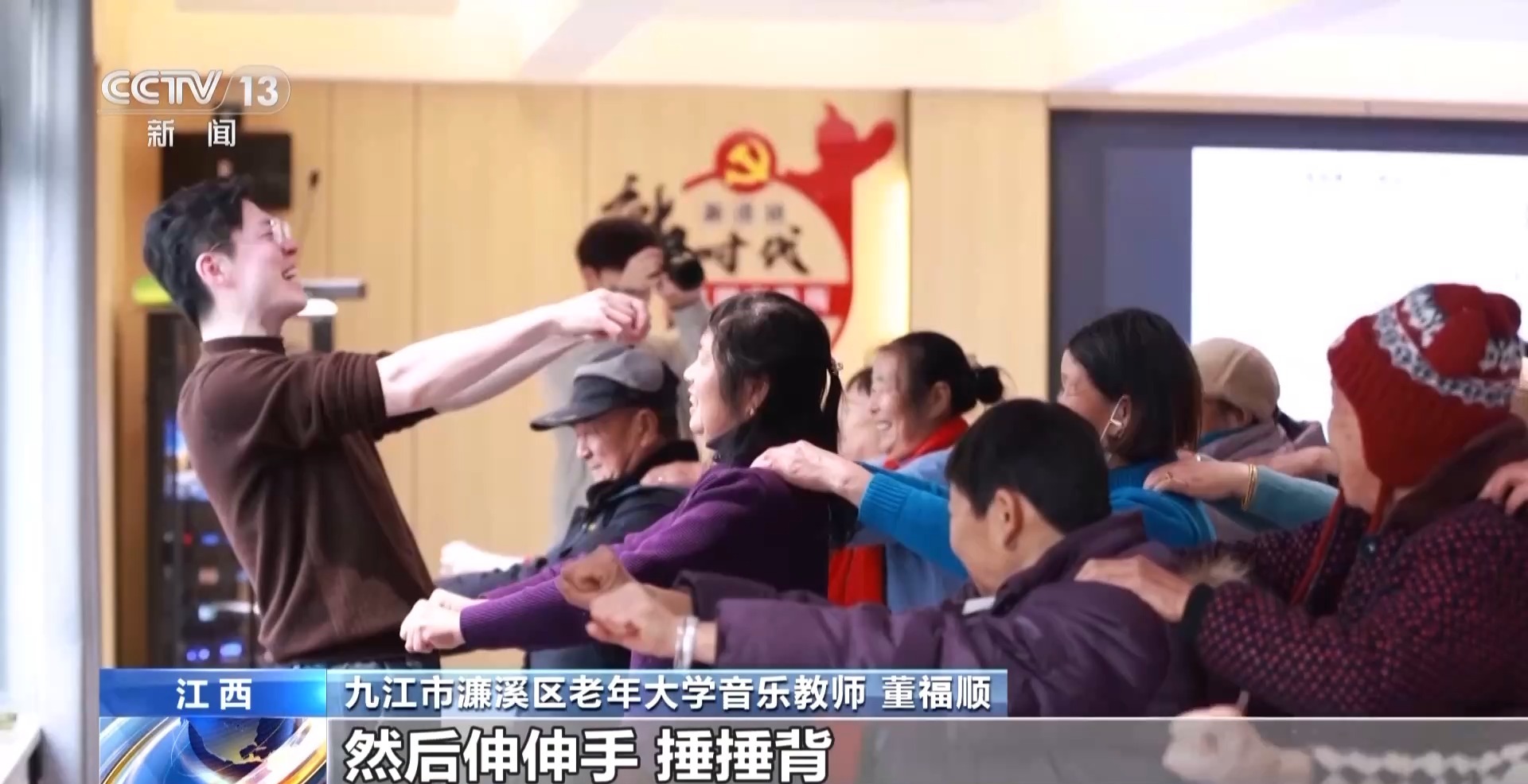九江市濂溪區(qū)老年大學(xué)音樂教師 董福順:我覺得音樂它是有律動(dòng)的,結(jié)合那個(gè)律動(dòng)再加這些動(dòng)作,然后伸伸手、捶捶背,我覺得這不就是生活中的動(dòng)作,你把它再帶到課堂里邊兒,帶到音樂里邊兒,課堂就不一樣。