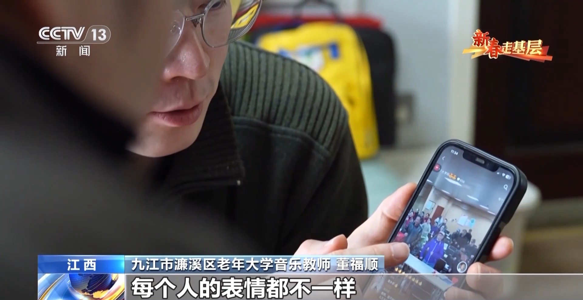 董福順在大學(xué)學(xué)的是聲樂,在九江市老年大學(xué)已經(jīng)當(dāng)了9年的音樂老師。這個(gè)臘月趁著老年大學(xué)放假,他把課堂搬進(jìn)了社區(qū)、村莊和養(yǎng)老院,免費(fèi)帶大家上課。