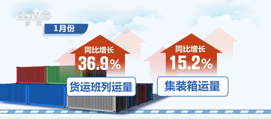 物流產(chǎn)品供給優(yōu)質(zhì)高效。1月份,貨運班列運量同比增長36.9%;集裝箱運量同比增長15.2%;鐵水聯(lián)運量完成155.5萬標(biāo)箱,同比增長15.3%,有力支持建設(shè)全國統(tǒng)一大市場。