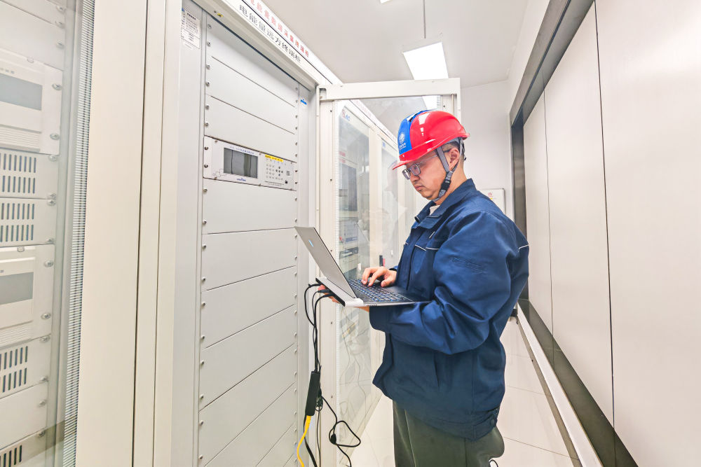 ↑ 2月16日,國(guó)網(wǎng)湖北超高壓公司工作人員在宜昌500千伏安福變電站對(duì)設(shè)備進(jìn)行巡檢。新華社記者 肖藝九 攝