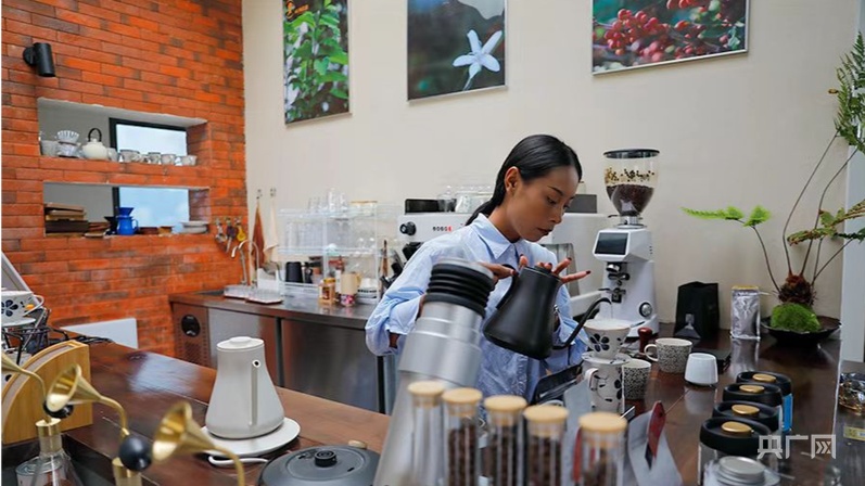 現(xiàn)在的咖啡不僅是杯中飲品,更成了文旅場(chǎng)景。山頂咖啡館、科普長(zhǎng)廊與周邊的翁丁原始部落聯(lián)動(dòng),形成“以咖促旅、以旅興咖”的閉環(huán)。來(lái)自班考村的佤族青年周開艷,不再外出務(wù)工,而是在家鄉(xiāng)成為了一位專業(yè)咖啡師。她開心地說:“離家近了,收入多了,這就是我向往的生活?!?/p>