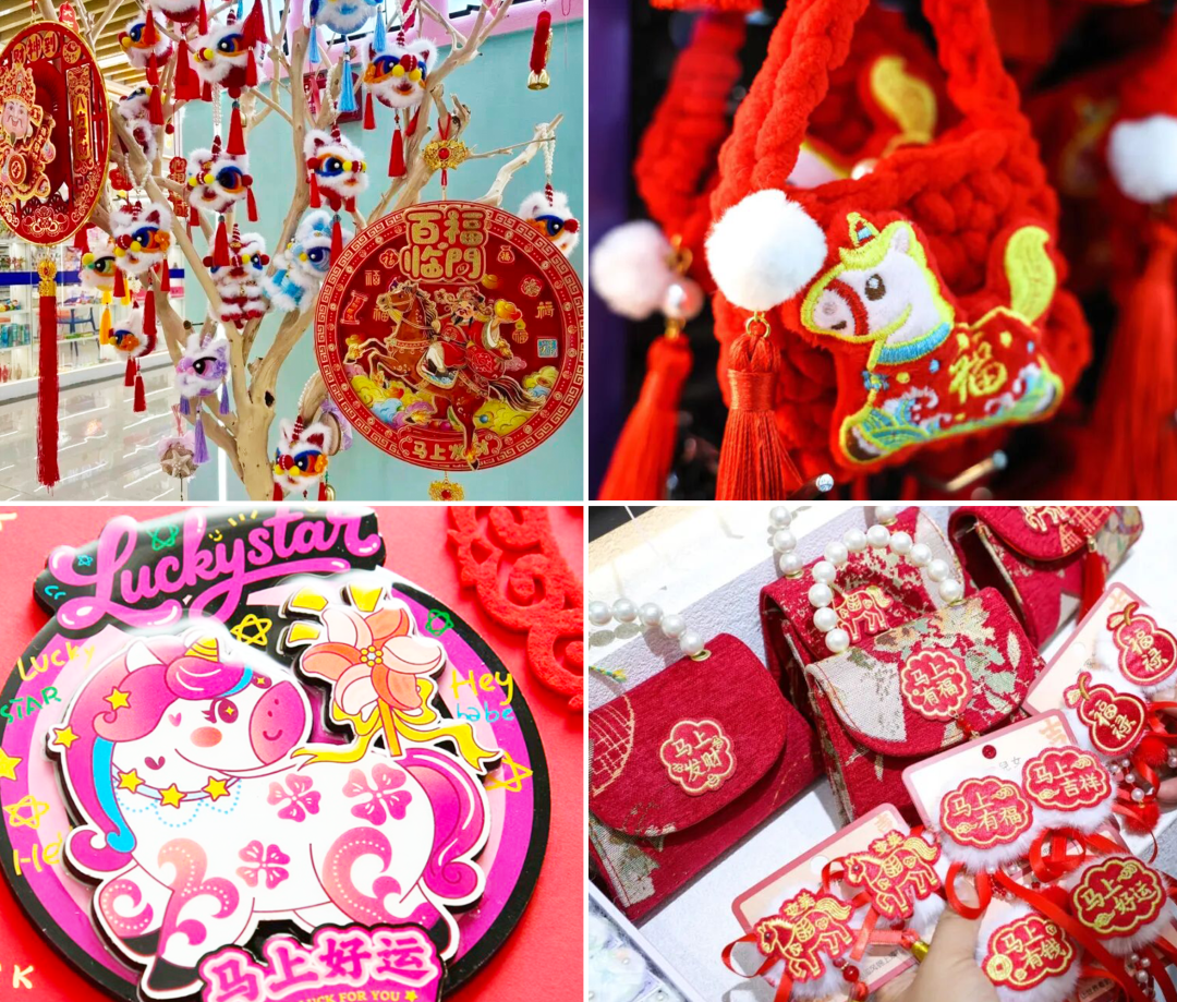 義烏國際商貿(mào)城年味兒滿滿,年畫、燈籠、馬年玩偶,還有各式各樣的創(chuàng)意潮玩年貨,鋪天蓋地的“中國紅”,熱熱鬧鬧。