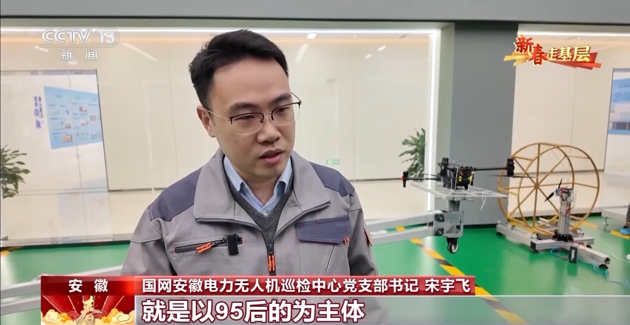 國網(wǎng)安徽電力無人機巡檢中心黨支部書記 宋宇飛:我們這個團隊就是以95后的為主體,占比應(yīng)該是在60%。