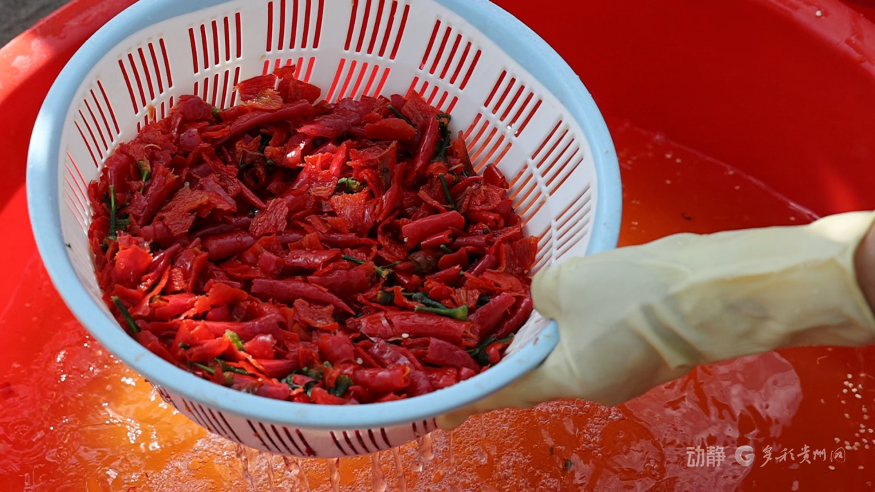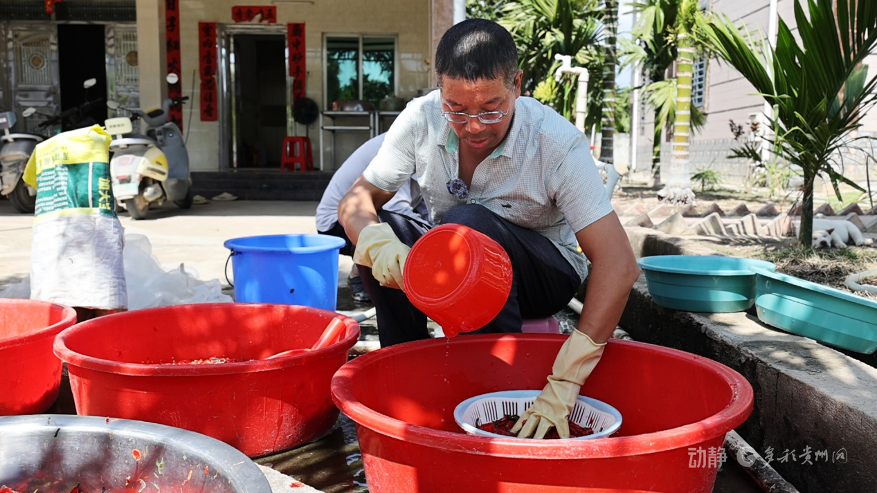 貴州省農(nóng)科院辣椒研究所“黔辣”育種團(tuán)隊成員劉崇政正在分離采收的辣椒種