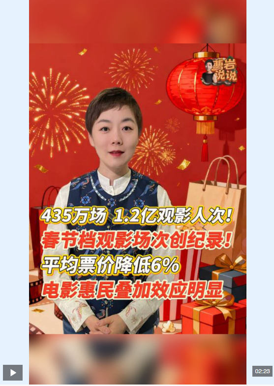 2026馬年春節(jié)檔圓滿收官,精彩表現(xiàn)彰顯了文化惠民實(shí)效與市場的強(qiáng)勁活力。從充足供給、親民票價(jià)到下沉市場發(fā)力,電影產(chǎn)業(yè)以惠民政策為抓手,聯(lián)動(dòng)多方釋放消費(fèi)潛力,帶動(dòng)多元業(yè)態(tài)融合發(fā)展。中國電影穩(wěn)步邁向高質(zhì)量發(fā)展,持續(xù)為群眾美好生活添彩,為文化繁榮與經(jīng)濟(jì)增長注入新動(dòng)能。