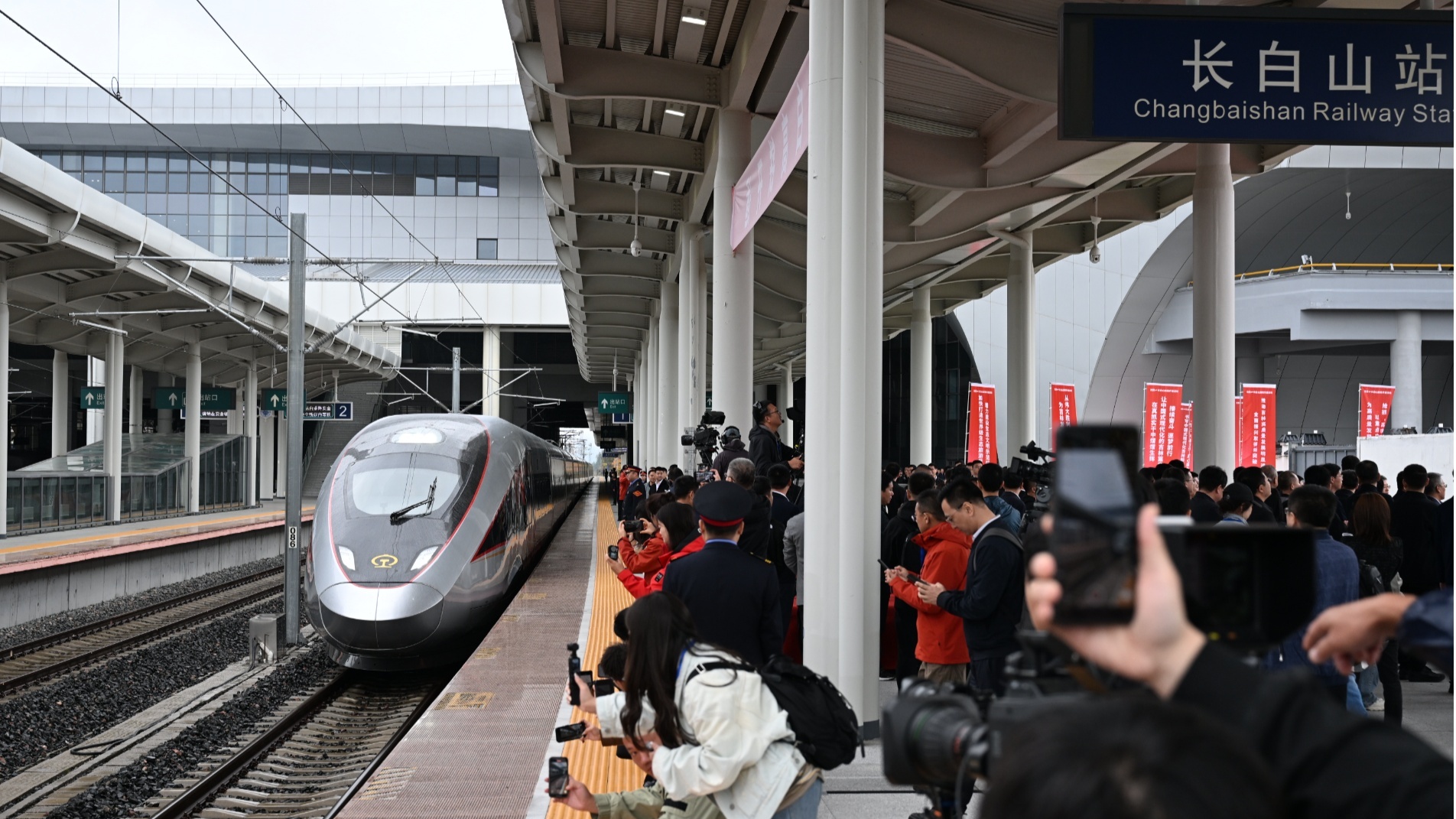 2025年9月28日,沈白高鐵正式開通運(yùn)營。12時(shí)許,G8134次列車平穩(wěn)駛?cè)虢礀|站,白山市正式邁入“高鐵時(shí)代”。