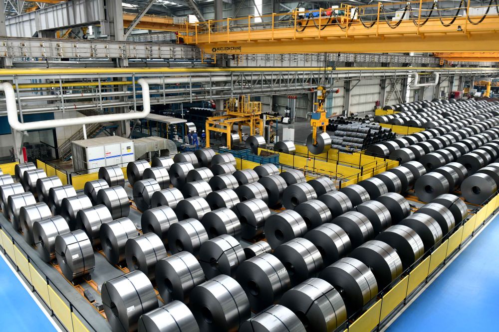 在山東日照昱嵐智造產(chǎn)業(yè)園拍攝的鋼卷生產(chǎn)車(chē)間(2025年5月21日攝)。