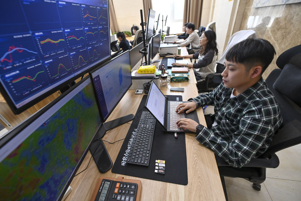 電力交易員在位于山西省太原市小店區(qū)的晉控電力一家公司內(nèi)工作(2024年4月1日攝)。