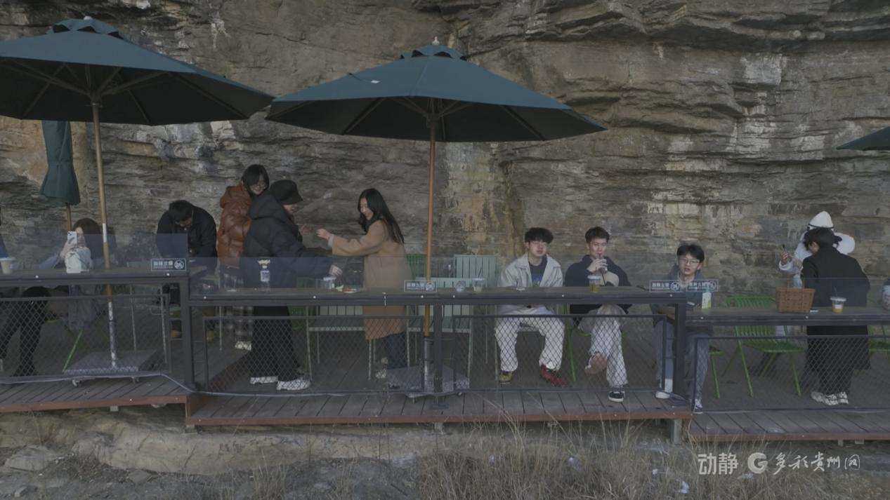 站在懸崖咖啡廳,腳下是150米垂直落差的喀斯特峽谷,建筑與青山融為一體,一杯熱咖啡,滿眼好風(fēng)光。即便氣溫偏低,這里依舊人氣滿滿。
