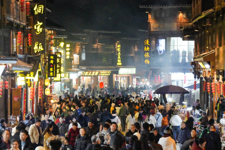 2026年2月19日,游客在貴州省黎平縣肇興侗寨游玩。新華社發(fā)(龍建睿攝)