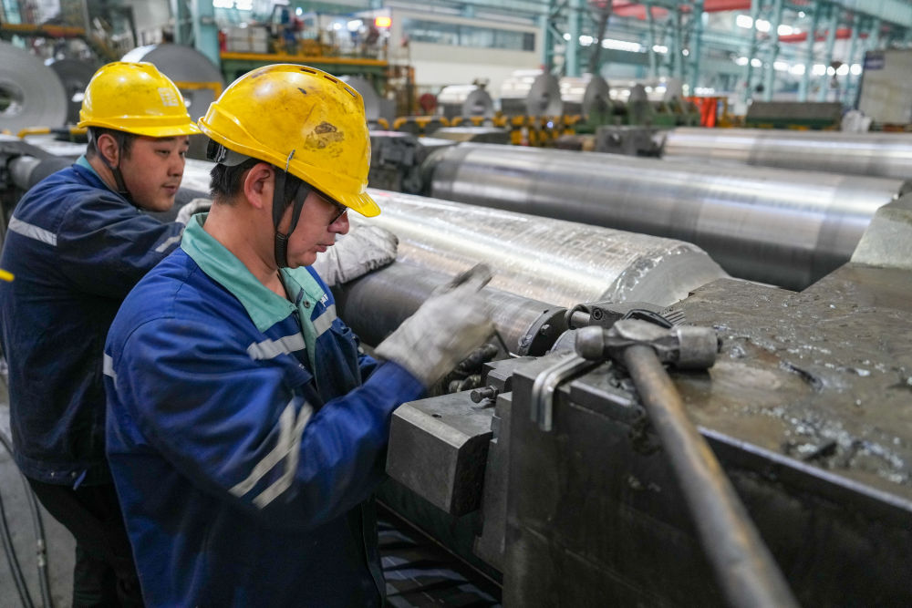2月26日,在位于江蘇省無錫市的銀邦金屬復(fù)合材料股份有限公司,工作人員在生產(chǎn)車間進行生產(chǎn)。