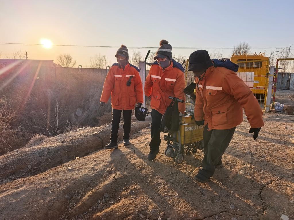 戴上口罩、帽子,隊(duì)員們把自己裹得嚴(yán)嚴(yán)實(shí)實(shí)。早晨七點(diǎn)半,隊(duì)員們合力將重達(dá)50余公斤的探傷儀抬上作業(yè)車,向著柳村南一場(chǎng)駛?cè)?。戶外的風(fēng)迎面撲來(lái),臉被刮得生疼,手指難展,可班長(zhǎng)霍智慧卻說(shuō):“最近天氣回暖,今天這天氣算好的了。”