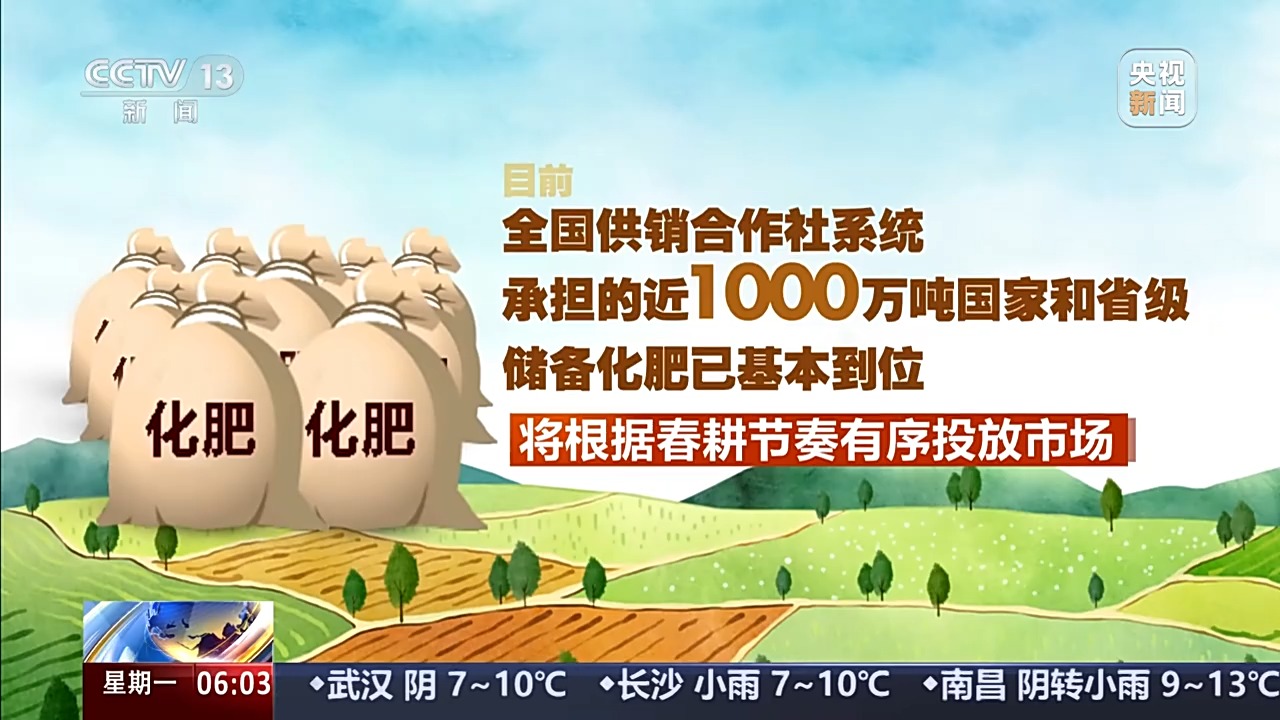 目前,全國(guó)供銷(xiāo)合作社系統(tǒng)承擔(dān)的近1000萬(wàn)噸國(guó)家和省級(jí)儲(chǔ)備化肥已基本到位,將根據(jù)春耕節(jié)奏有序投放市場(chǎng)。