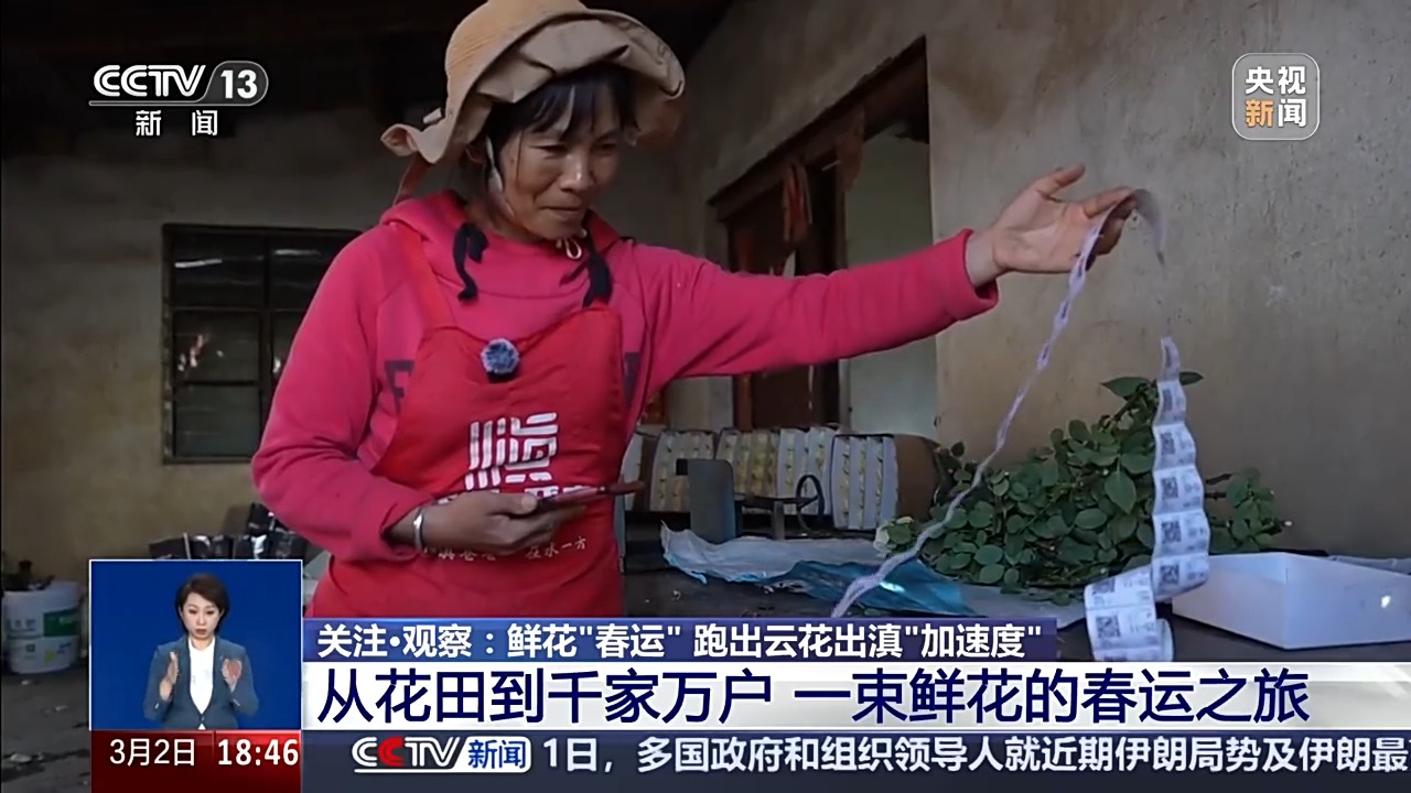 某電商平臺(tái)聯(lián)合創(chuàng)始人 張星:像這個(gè)集貨站,今天應(yīng)該有300~400個(gè)花農(nóng)要過(guò)來(lái)送花。我們?cè)谌颇舷襁@樣的集貨站有60多個(gè)。7個(gè)小時(shí)以內(nèi),要把40多萬(wàn)扎花分揀到位。因?yàn)槟惆l(fā)不出去的話,早上的飛機(jī),你就趕不上了。