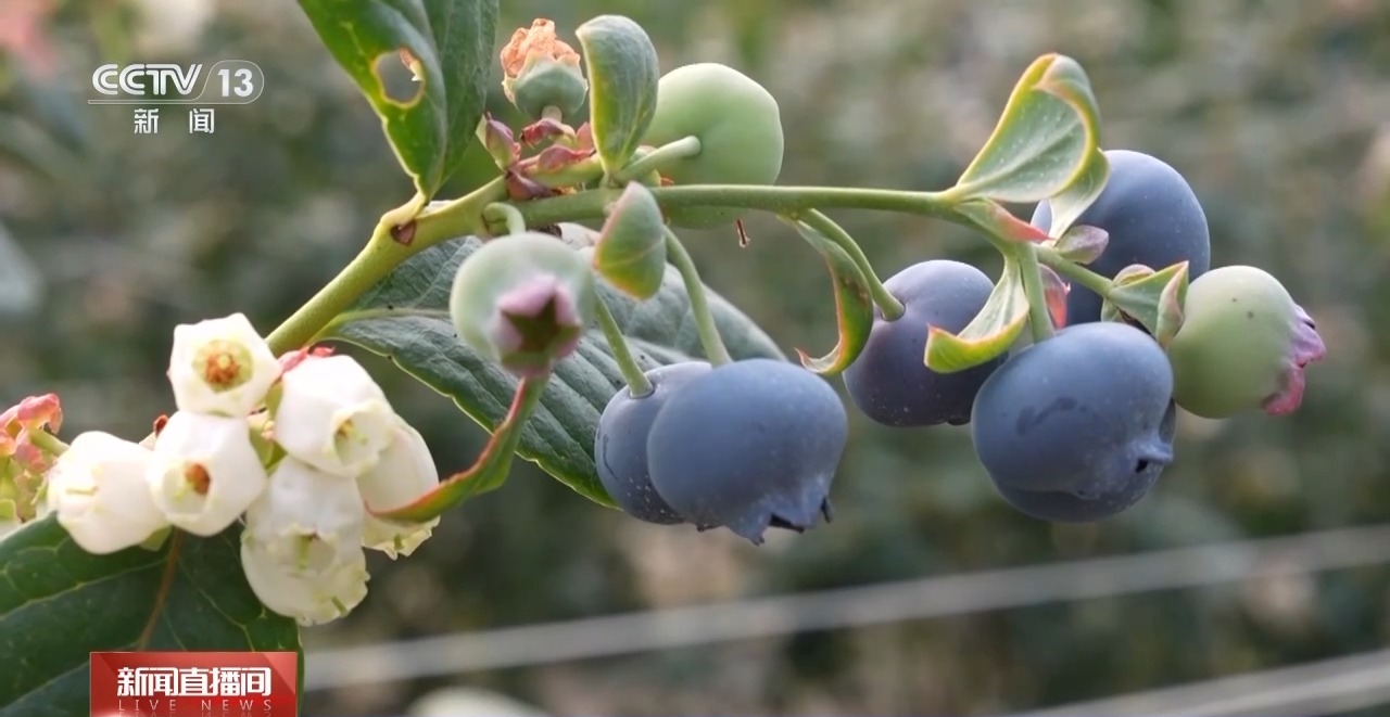 與傳統(tǒng)地栽不同,這里的藍莓生長在特制的無土基質(zhì)中,全程實現(xiàn)精準管控??萍挤N植不僅有效提升了藍莓品質(zhì),還大幅提前了上市時間,通過大棚溫控技術(shù),比當?shù)芈短旆N植的藍莓上市時間提前了2個月以上。