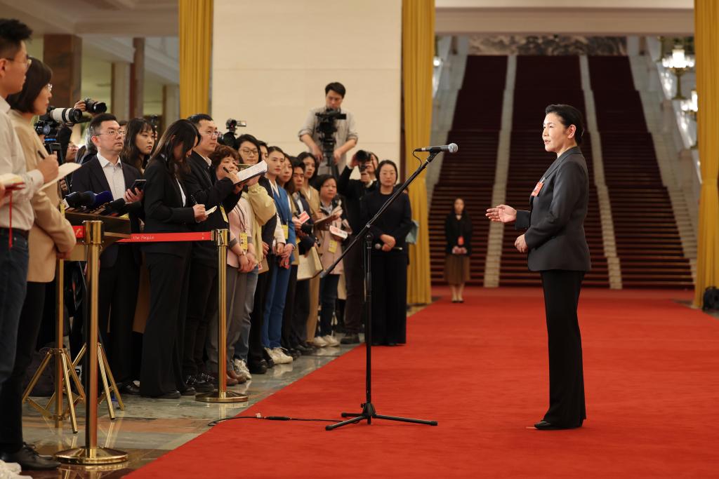 3月12日,第十四屆全國(guó)人民代表大會(huì)第四次會(huì)議第三場(chǎng)“部長(zhǎng)通道”集中采訪活動(dòng)在北京人民大會(huì)堂舉行。這是司法部部長(zhǎng)賀榮接受媒體采訪。新華社記者 金立旺 攝