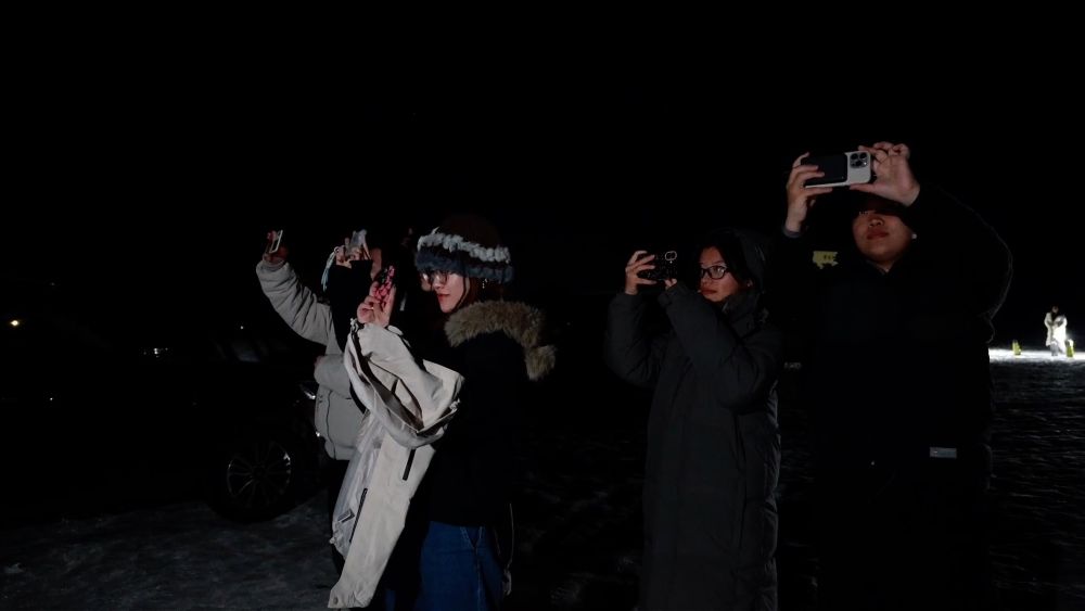 在漠河市北極鎮(zhèn)北極村,雖然夜間室外溫度非常低,卻絲毫沒有阻擋大批游客追光的熱情。