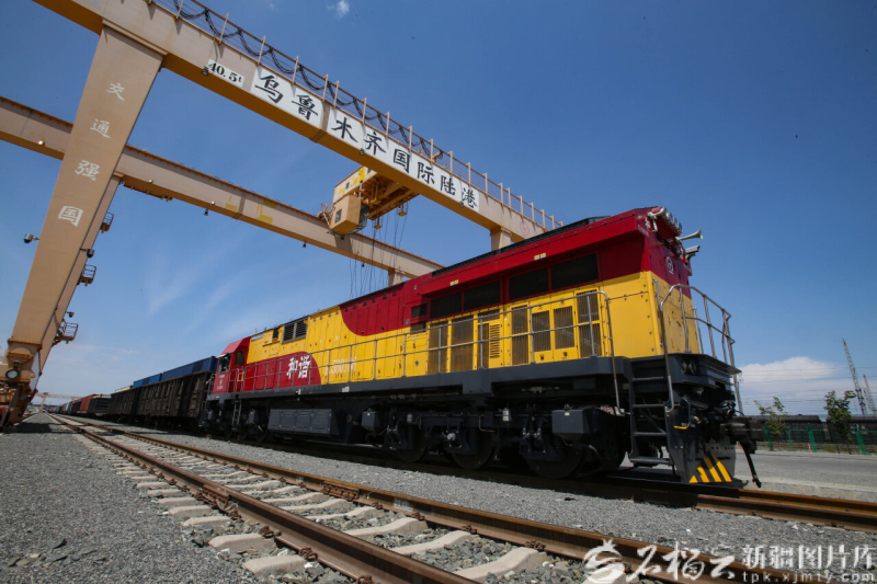 一列貨運(yùn)班列駛出烏魯木齊國際陸港區(qū)(資料圖片)。石榴云/新疆日報記者 韓亮攝