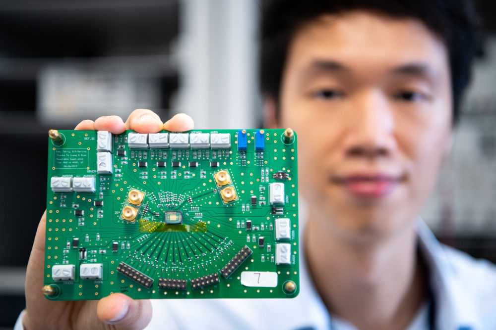 2019年11月1日,研究人員陳知行在模擬與混合信號超大規(guī)模集成電路國家重點實驗室(澳門大學)展示自主設計的模擬數字轉換器芯片。