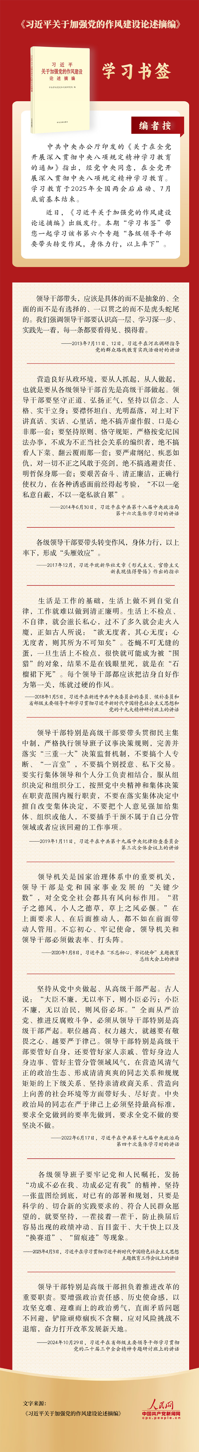 學習書簽丨各級領導干部要帶頭轉變作風