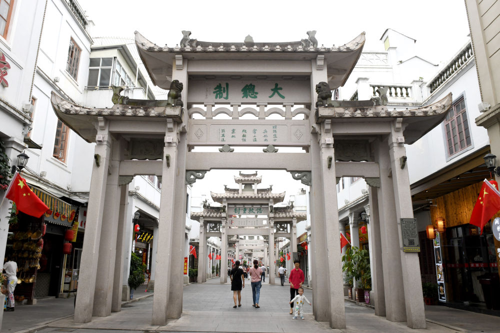 以牌坊街為文化地標(biāo)的潮州古城至今保持著“外曲內(nèi)方,四橫三縱”的宋代時(shí)街區(qū)格局。23座古牌坊連接起51條古街巷,商鋪林立,古色古香。