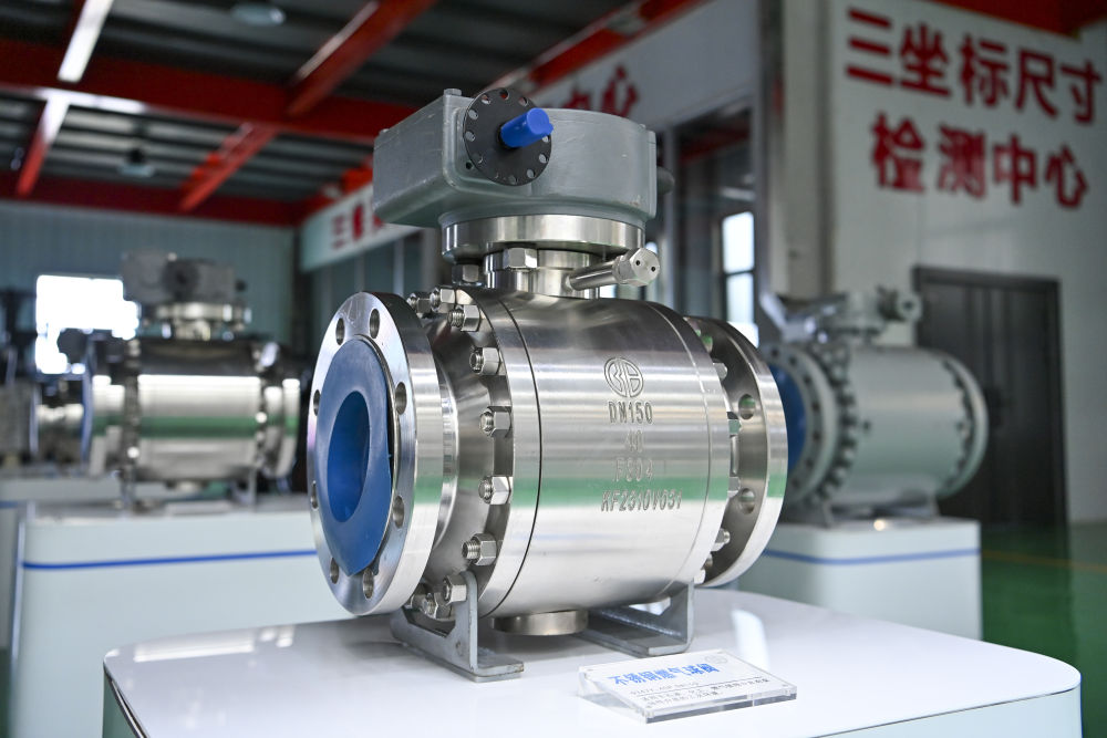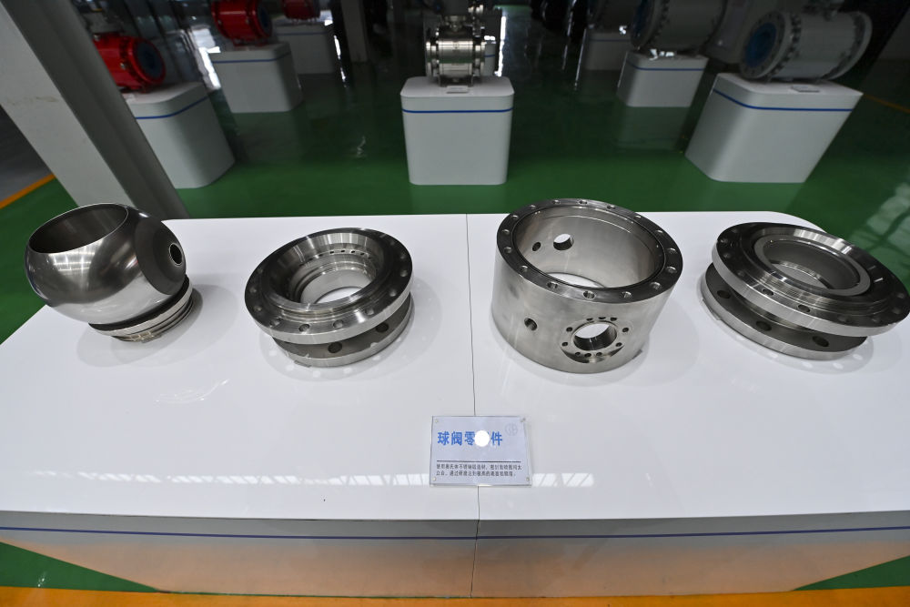 這是7月7日在陽泉閥門股份有限公司裝配成品車間拍攝的球閥零部件。