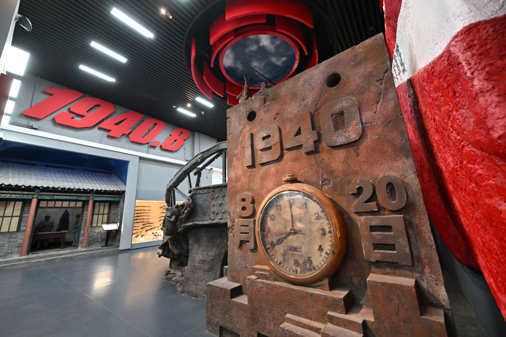 紀念館不遠處,巍峨的百團大戰(zhàn)紀念碑形如刺刀,直插云霄。
