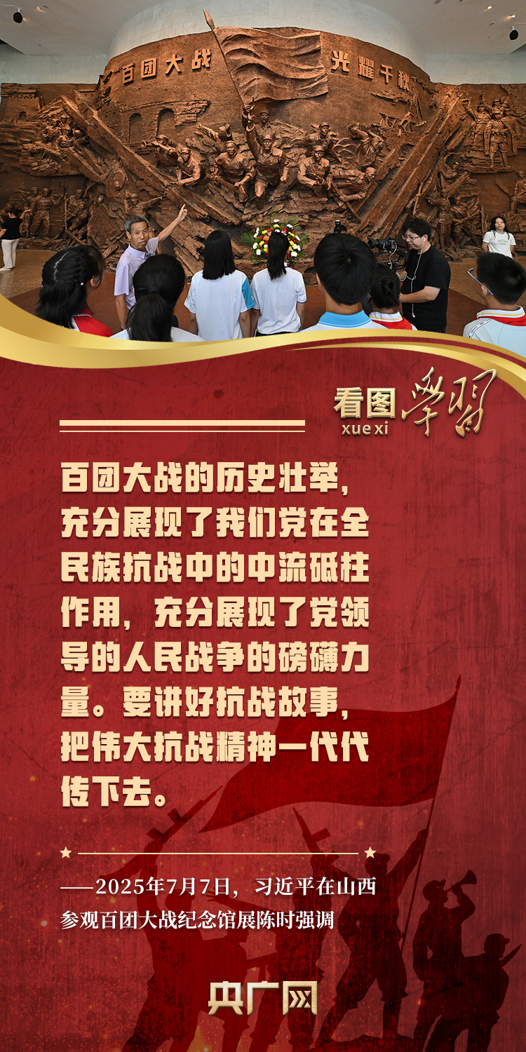 “要講好抗戰(zhàn)故事,把偉大抗戰(zhàn)精神一代代傳下去?!秉h的十八大以來,習近平總書記在地方考察調研時,多次到具有重大歷史意義的革命圣地、紅色舊址、歷史紀念場所等緬懷革命先烈,重溫崢嶸歲月,深刻闡釋歷史啟迪。今年是中國人民抗日戰(zhàn)爭暨世界反法西斯戰(zhàn)爭勝利80周年,《看圖學習》邀您一起跟隨總書記的腳步,共同緬懷抗戰(zhàn)先烈的豐功偉績,繼承和弘揚偉大抗戰(zhàn)精神,為強國建設、民族復興作出我們的新貢獻。