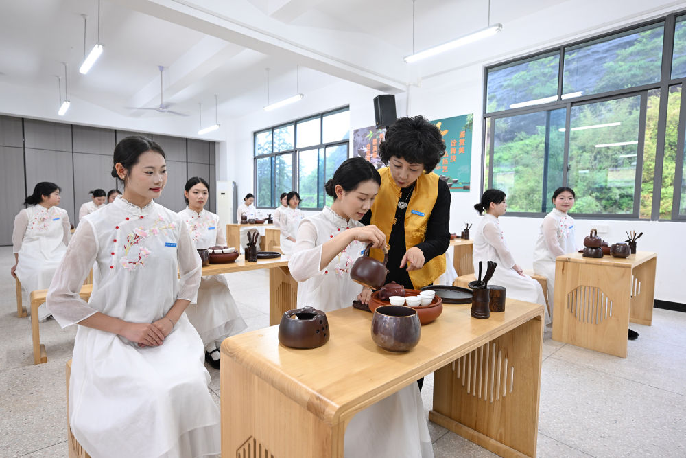 2025年5月8日,福建省武夷山旅游職業(yè)中專學(xué)校的茶藝?yán)蠋熢诮淌诓杷?。近年來,武夷山市依托?dāng)?shù)夭璁a(chǎn)業(yè)優(yōu)勢(shì),持續(xù)推進(jìn)茶文化、茶技能教育走進(jìn)校園,在當(dāng)?shù)芈殬I(yè)學(xué)校重點(diǎn)開設(shè)了茶藝、茶葉加工、茶營(yíng)銷等專業(yè),為當(dāng)?shù)夭璁a(chǎn)業(yè)發(fā)展、茶文化傳播培養(yǎng)職業(yè)技能人才。