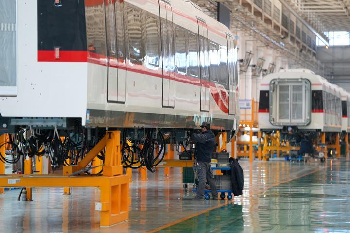 2025年2月14日,工作人員在京投裝備河北京車智能制造基地總組裝車間內(nèi)工作。京投裝備河北京車智能制造基地位于河北省保定市,是貫徹京津冀協(xié)同發(fā)展戰(zhàn)略的重要項目?!氨本┭邪l(fā)+河北制造” 的模式,既發(fā)揮了北京的創(chuàng)新優(yōu)勢,又拉動了河北當(dāng)?shù)氐木蜆I(yè)和經(jīng)濟,對培育首都軌道交通及其關(guān)鍵零部件等上下游產(chǎn)業(yè)、提升河北高端裝備制造水平發(fā)揮了推動作用。