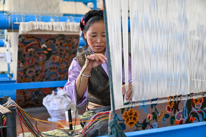 2025年7月18日,江孜藏毯文化發(fā)展有限責(zé)任公司的員工在生產(chǎn)車間內(nèi)編織藏毯。西藏日喀則市江孜縣是著名的藏毯(藏族稱為“卡墊”)之鄉(xiāng),織毯歷史悠久。藏族卡墊織造技藝于2006年被列入國家級非物質(zhì)文化遺產(chǎn)代表性項目名錄。近年來,江孜藏毯在守護(hù)傳統(tǒng)技藝的同時積極創(chuàng)新,通過建立合作社、開辦技能培訓(xùn)班等方式擴大靈活就業(yè)規(guī)模,讓更多人在家門口織藏毯增收。