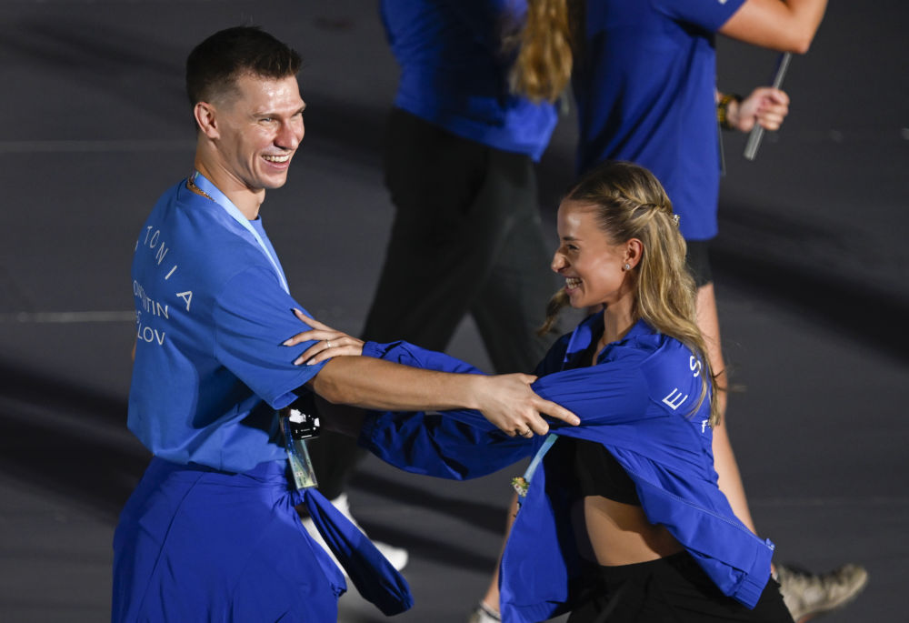 2025年8月7日,愛(ài)沙尼亞體育代表團(tuán)成員在第12屆世界運(yùn)動(dòng)會(huì)開(kāi)幕式上起舞。