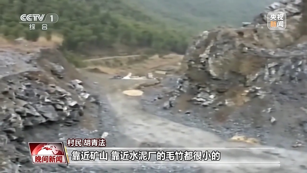 村民 胡青法:那片山都是灰蒙蒙的。那時(shí)候很明顯,靠近礦山、靠近水泥廠的毛竹,都很小的。