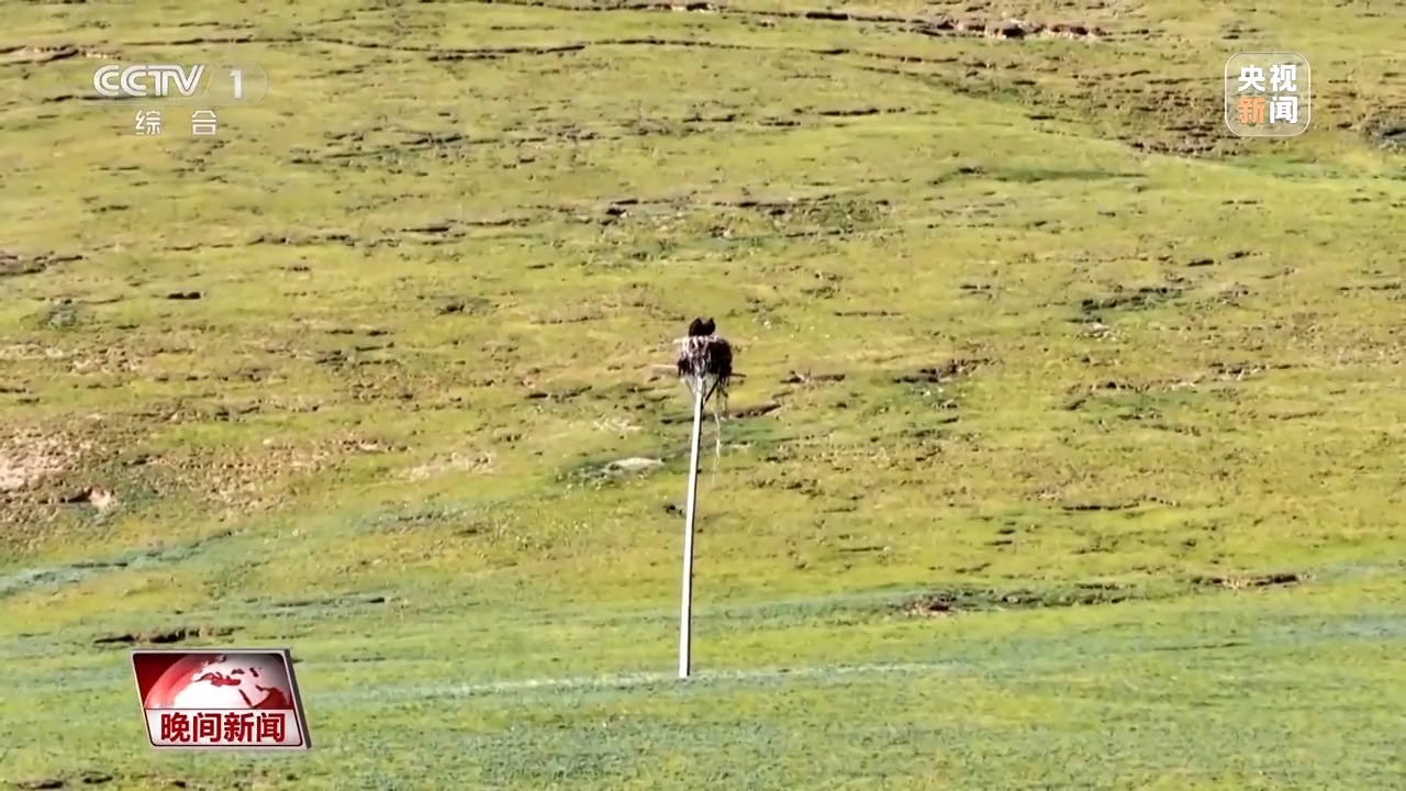 現(xiàn)在的三江源草原上,每隔一段距離就會有這樣一根孤零零的水泥桿。它有一個(gè)非常形象的名字,叫招鷹滅鼠架,老鷹在觀察臺上觀察目標(biāo),瞄準(zhǔn)沖擊。這也是三江源國家公園保護(hù)草場,防治鼠害的一項(xiàng)有力措施。