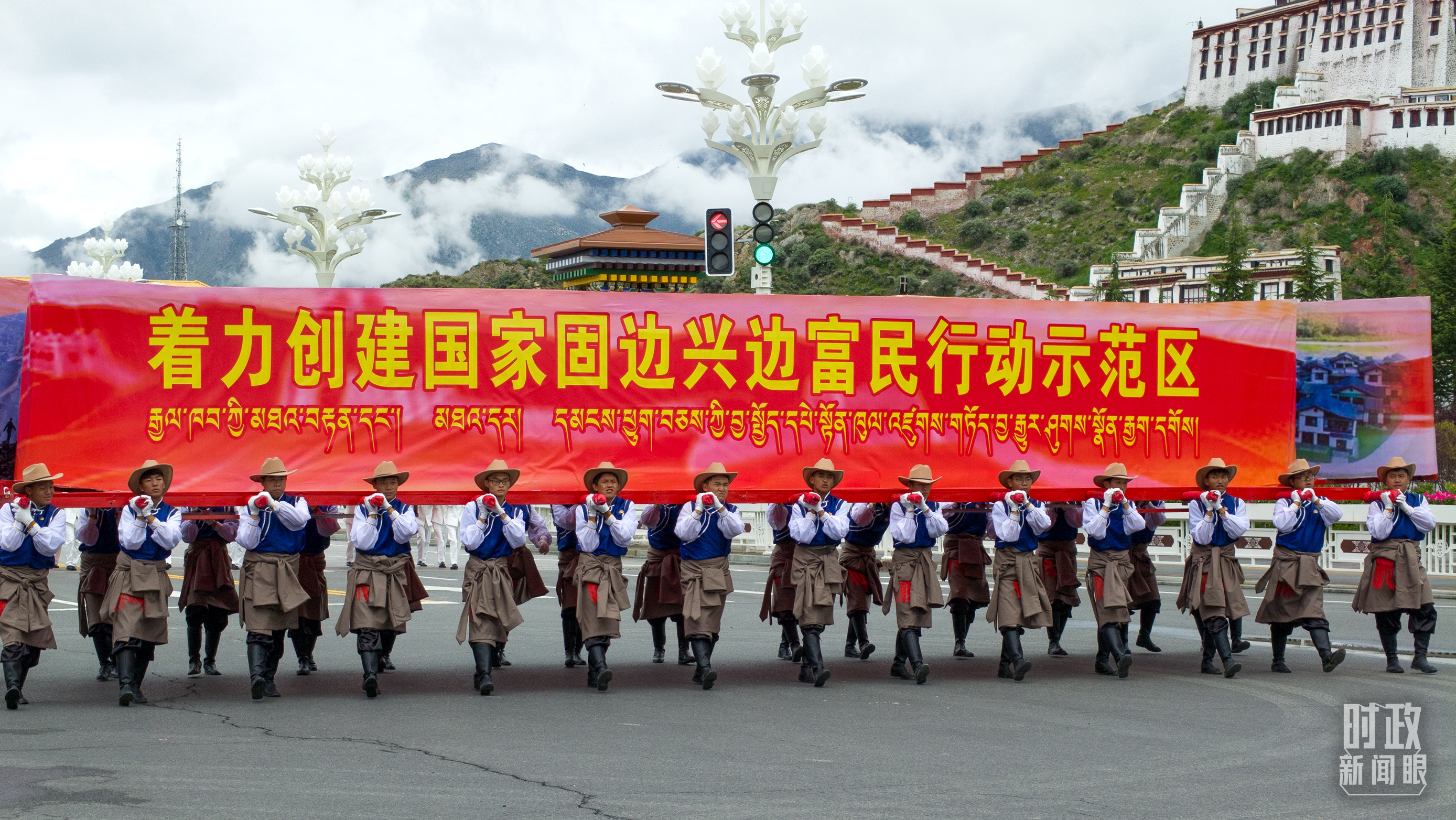 在慶祝大會的群眾游行環(huán)節(jié),“四件大事”單元展示了西藏自治區(qū)“四個創(chuàng)建”的奮斗目標:著力創(chuàng)建全國民族團結(jié)進步模范區(qū)、著力創(chuàng)建高原經(jīng)濟高質(zhì)量發(fā)展先行區(qū)、著力創(chuàng)建國家生態(tài)文明高地、著力創(chuàng)建國家固邊興邊富民行動示范區(qū),分別對應(yīng)穩(wěn)定、發(fā)展、生態(tài)、強邊四件大事。